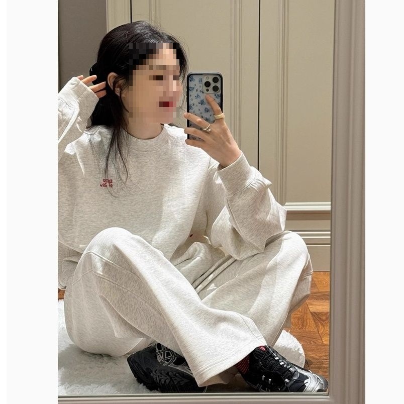 001 Koreaanse stijl luie casual sportkleding voor vrouwen lente en herfst student losse afslankende ronde hals sweatshirt hardlopen