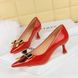1961-K68 Mode Puntige Dunne Hak Damesschoen met Metalen Strik, Lakleer, Glanzend Oppervlak, Enkele Schoen, Ondiepe Mond,
