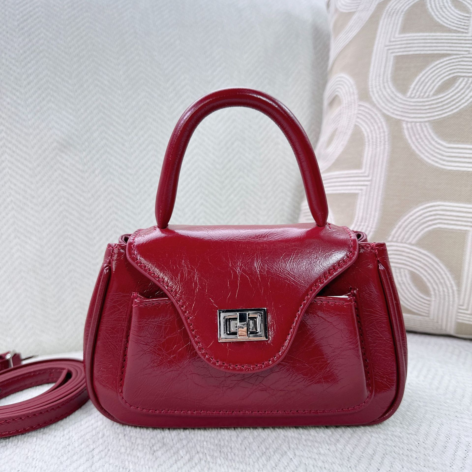 2024 new Korean niche design top layer oil wax cowhide portable messenger bag, simple and casual one shoulder crossbody bag