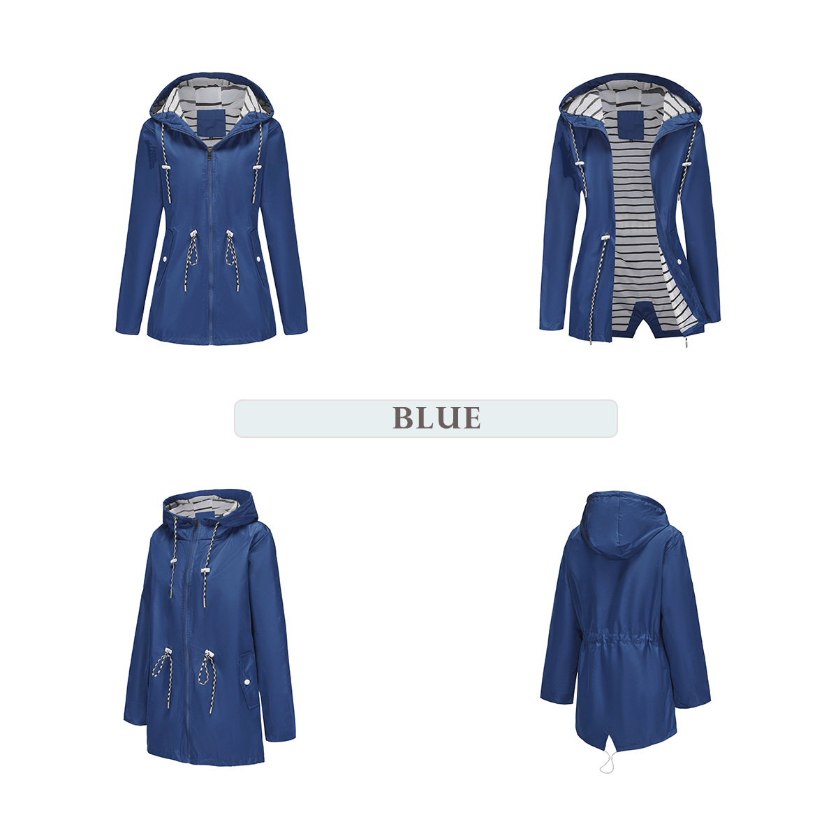 2024 Nieuwe lange mouwen anti-spat middellange windjack capuchon gestreepte regenjas grote dameskleding