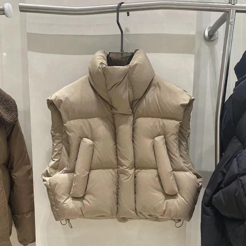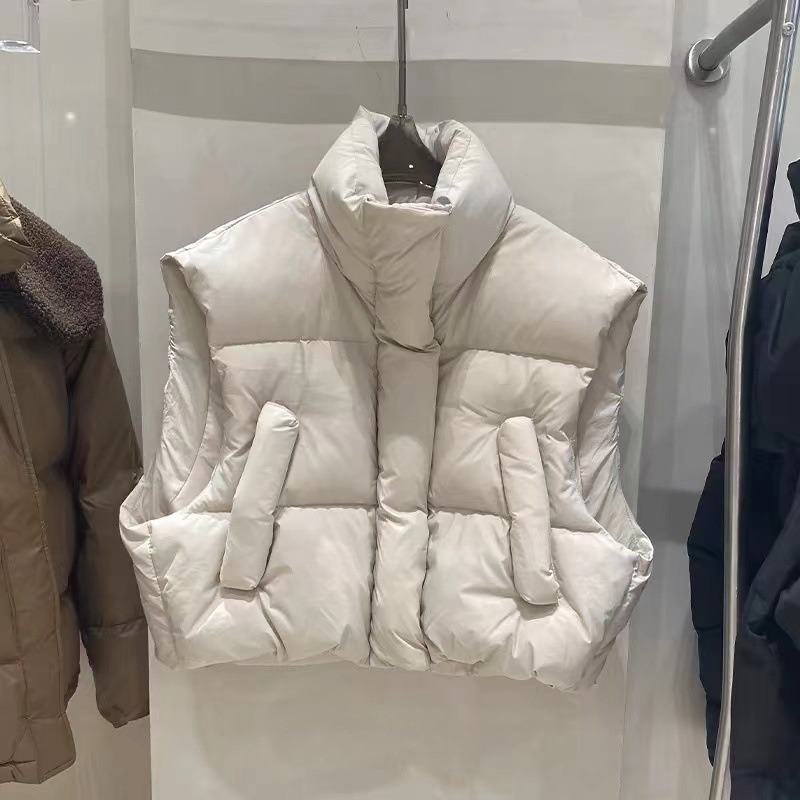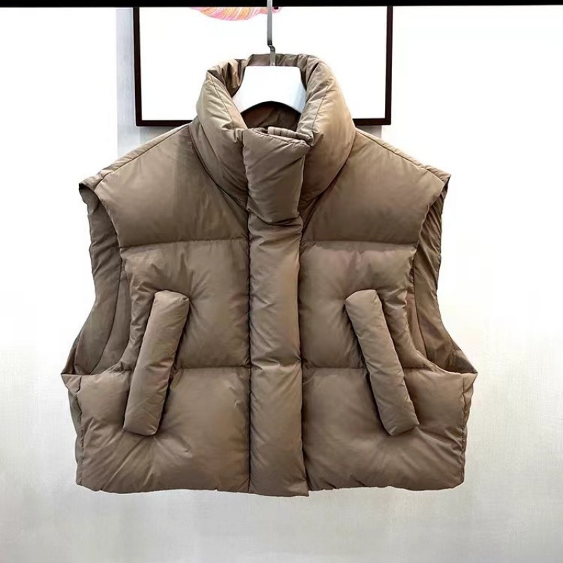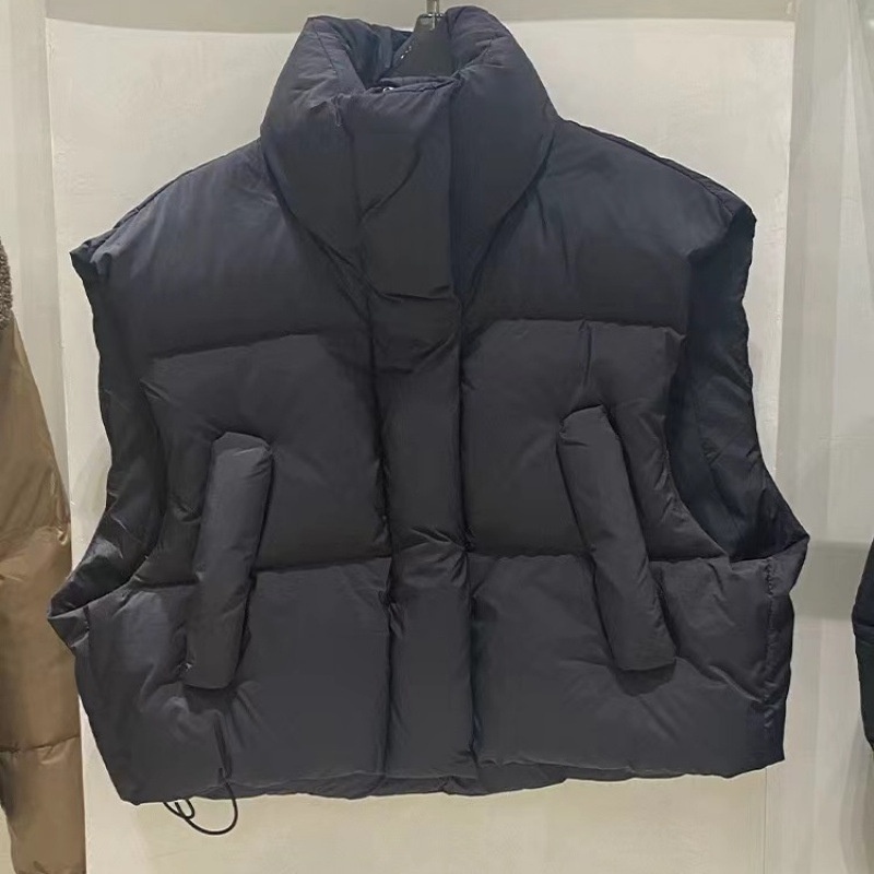 2025 Herfst Winter Nieuwe Mode Down Katoenen Opstaande Kraag Studenten Vest Jas Dames Koreaanse Stijl Effen Kleur Losse Pasvorm