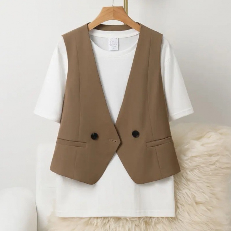 2025 Nieuwe lente/herfst dames slim fit afslankend vest met dubbele rij elegant modieus vest voor vrouwen direct van de fabriek over de grens