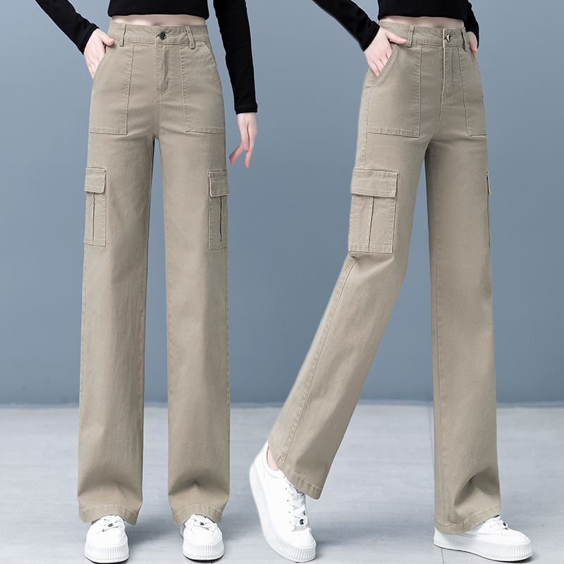 American high waisted narrow version wide leg pants for women, versatile in spring and summer, loose and slimming straight leg casual workwear pants