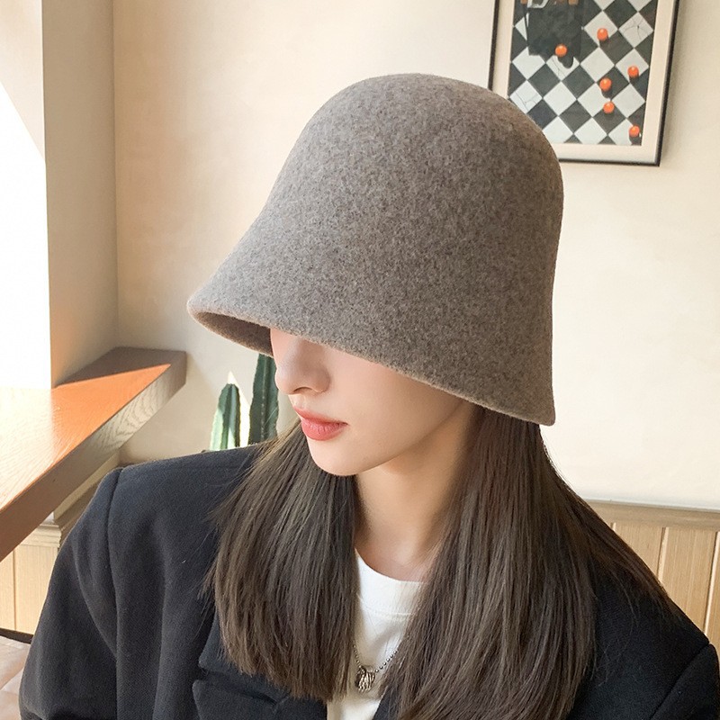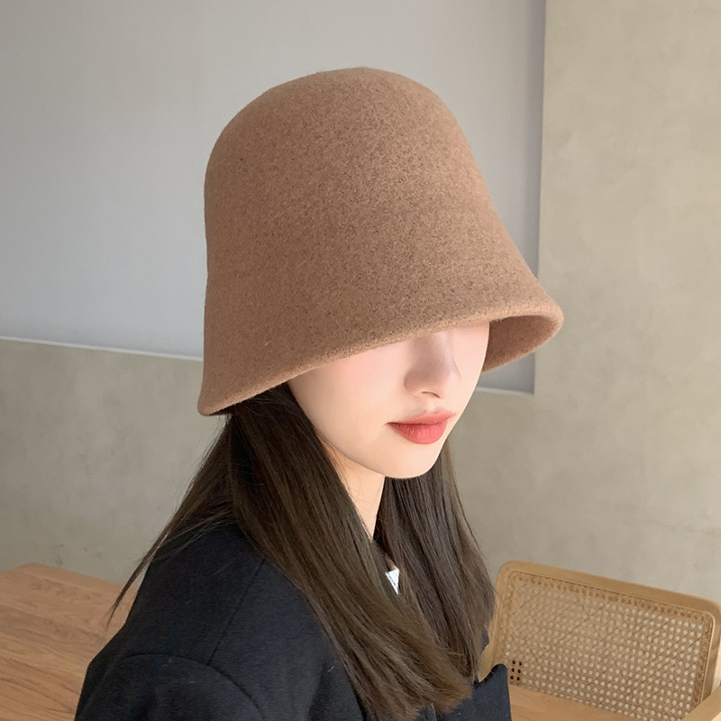 Autumn and Winter New Women's Light Plate Solid Wool Bucket Hat Outdoor Travel Korean Fashion Small Pot Hat Trend