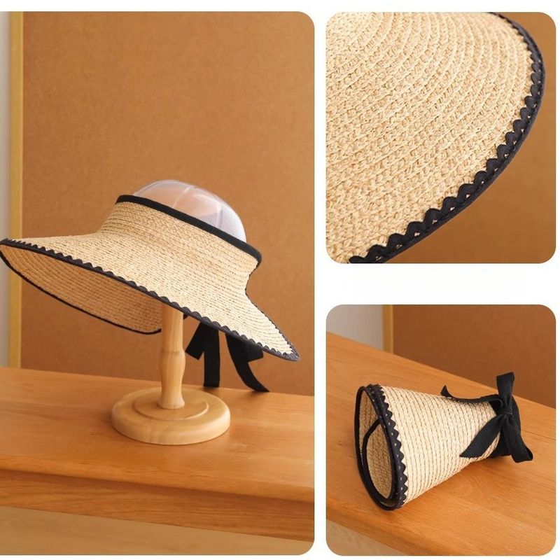 Raffia Straw Visor Hat with Wide Brim, Full Face Sun Protection Straw Hat for Women, Summer Travel Sun Hat, Rollable and Packable