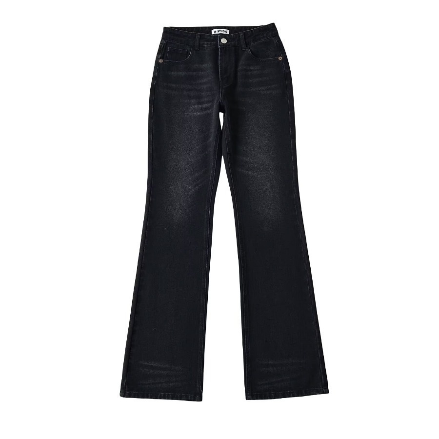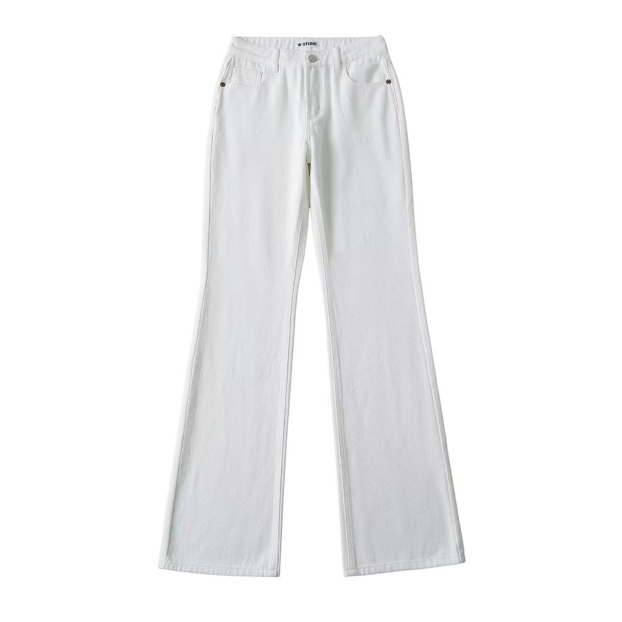 ChicShe 2025 Nieuwe INS Europese en Amerikaanse stijl gewassen witte mid-waist flared broek vloerlengte dames hoge taille afslankend