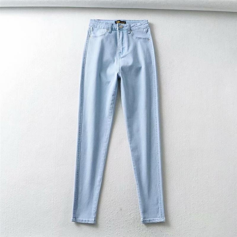 ChicShe Europese en Amerikaanse stijl elastische slanke hoge taille afslankende denim dames, herfstbroek met billifting, gewassen potlood