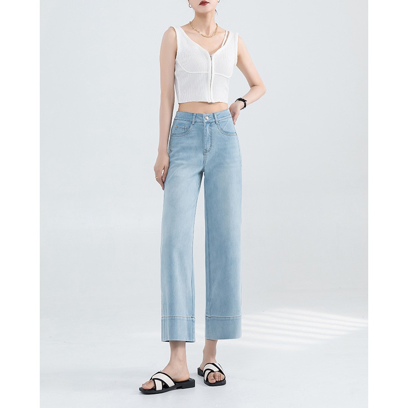 Item Number:3546,Brand:Jin Shang Yan Rui,Fabric Name:Denim Fabric,Main fabric composition:Cotton,Main fabric material composition 2:Tencel Lyocell Fiber,Design:Straight-leg Pants,The length of the pants:Ankle-length pants,Waist Shape:High-waisted,Thickness:Thin,Trendy Elements:Pocket,Year/Season of Release:Summer 2024,Color:Glacier Blue, Sea Salt Blue,Size:26,27,28,29,30,31,32,Style Type:Vintage Art Style,Main fabric ingredient content:30% included - 50% excluded,Pants Style:Straight Cut,Product Category:Jeans,What is the source type?:Other brands,Hang Tag:No tags,Main Downstream Sales Regions 1:European and American,Style:French Style,Elasticity:Slightly Elastic,Cross-border Style Type:Elegant and graceful,Is it cross-border sourcing?:yes,Receive the Label:No Collar Label,Main fabric component 2 content:Below 30%,Craftsmanship:Collage/Assembly,Main downstream sales regions 2:Middle East