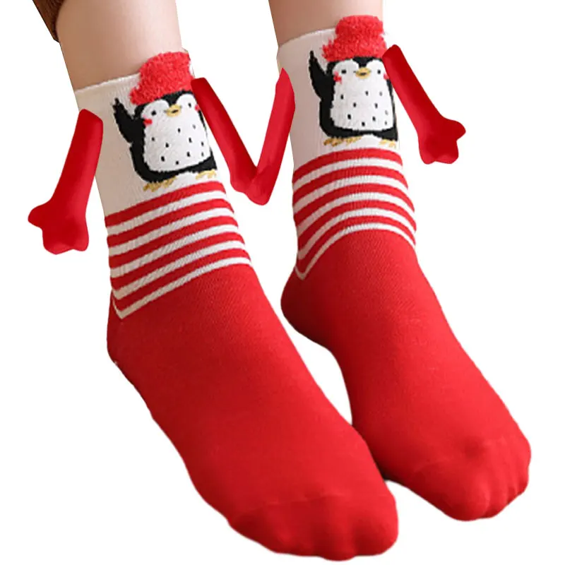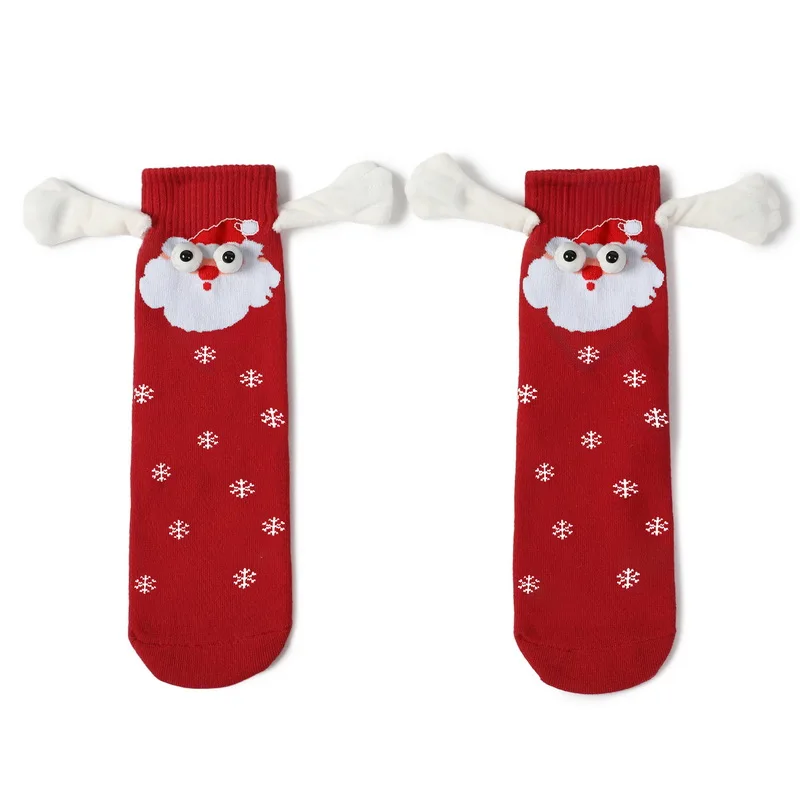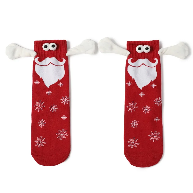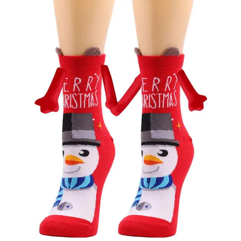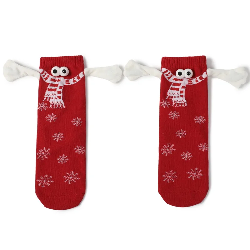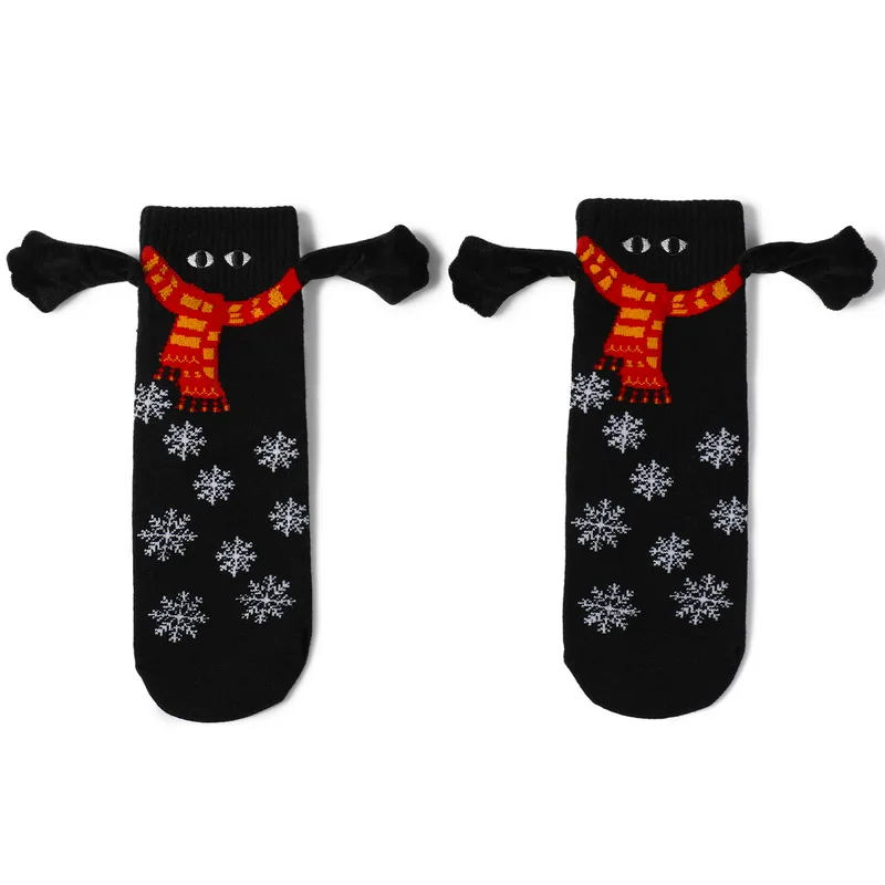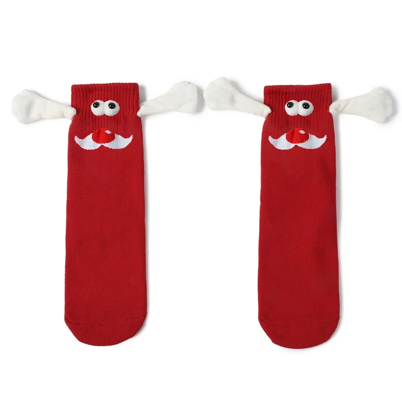 Kerstmis Grappige Magnetische In Hand Vrouwen Rood Zwart Mid Tube Met Vingers Unisex Schattige Paar Katoenen Sokken