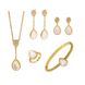 Dames Sieraden Paleis Retro Temperament Stijl Natuurlijke Agaat Parelmoer Traanvormige Oorbellen Ring Ketting Vierdelige Set