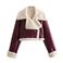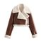 Dames revers fleece jas met bontkraag, dubbelzijdig kort, omkeerbaar fleece jasje voor dames - Wintermode bovenkleding