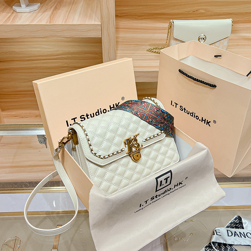 Simple genuine leather wide shoulder strap women's bag, black bag, women's 2024 new trendy and versatile fashion single shoulder crossbody diamond grid bag