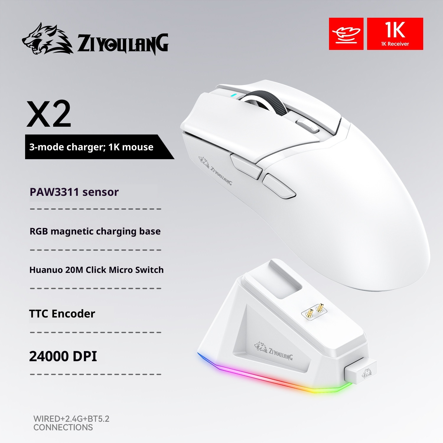 Digitex Free Wolf X2 Lightweight PAW3311 draadloze Bluetooth gamingmuis met drie modi en oplaadstation met RGB-verlichting