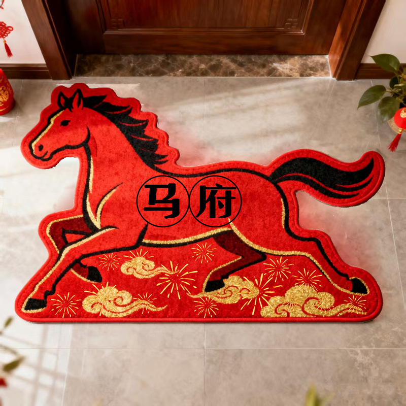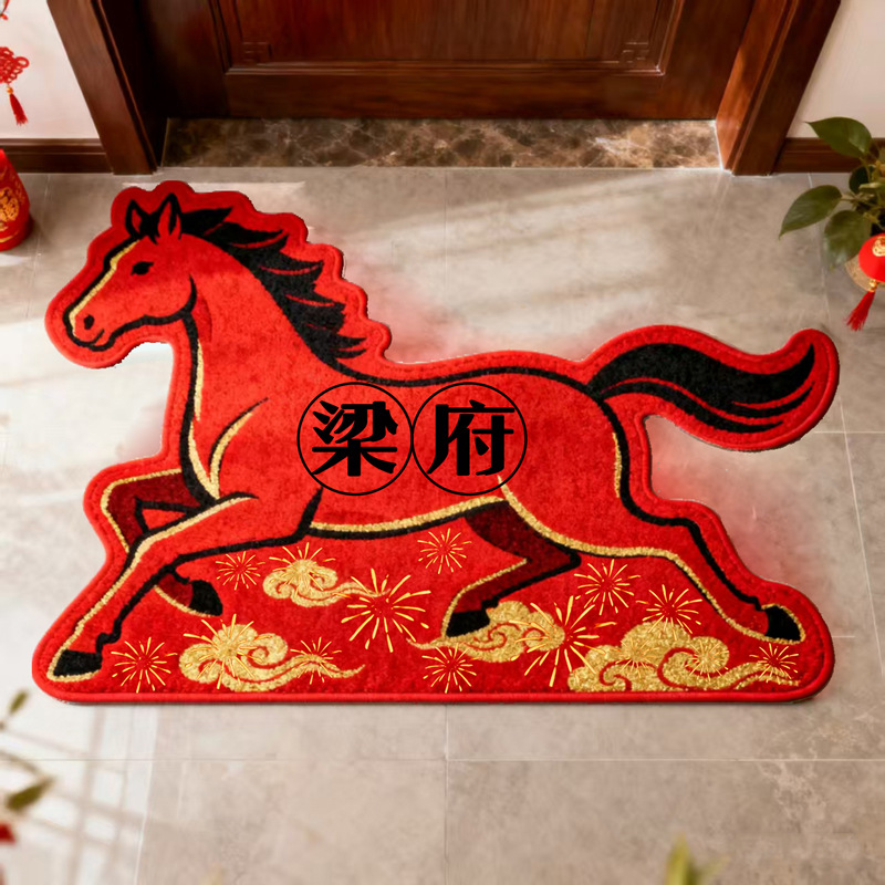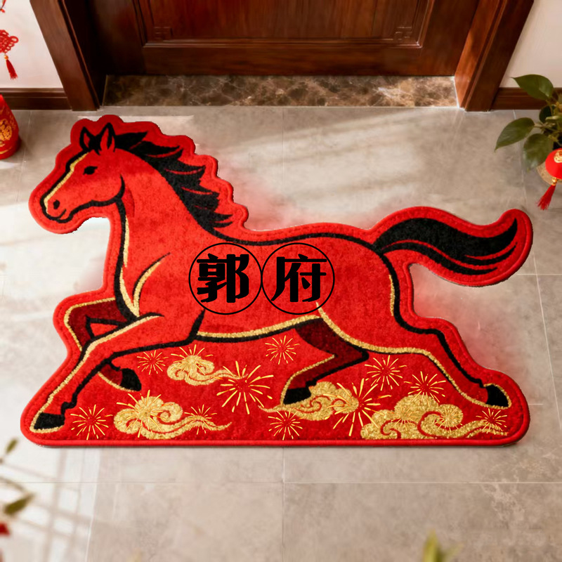 Speciaal gevormd paard Nieuwjaar DIY Achternaam Honderd Familienamen Huishouden Rode Entree Feestelijke Deurmat Entree Vloer