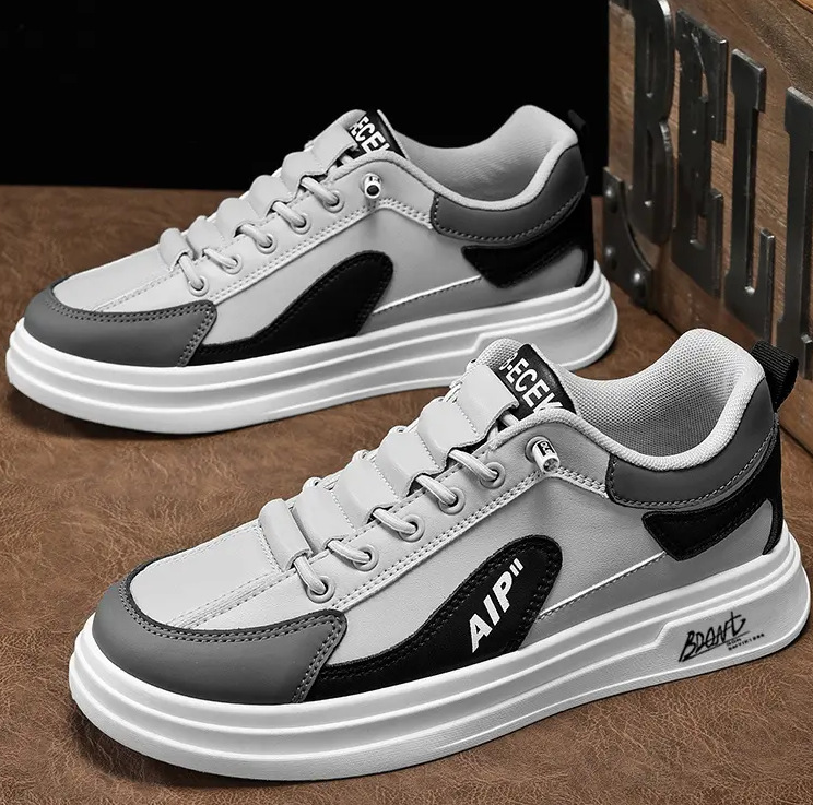 Forrest Gump men's shoes for autumn kitchen work, waterproof and anti slip men's casual leather shoes for sports, one foot black safety shoes