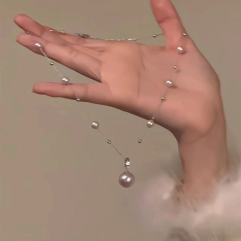 French Style High-End Pearl Pendant Necklace for Women, Simple Versatile Elegant Light Luxury Starry Sky Collarbone Chain Fashion Jewelry