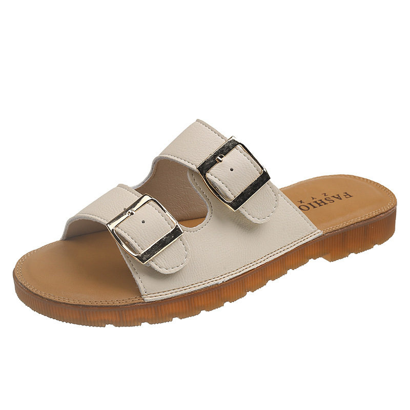 Echt leer Oxford-slippers met zachte zolen Dames zomer bovenkleding 2023 nieuwe all-match strandsandalen met riemgesp