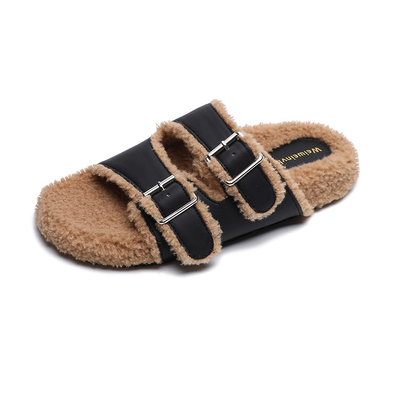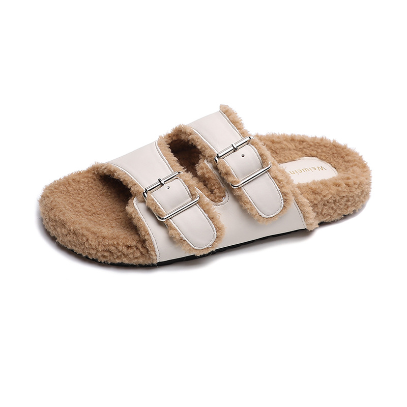 Meisje Bont Slippers Dames S Bovenkleding Herfst En Winter Een Woord Riem Plus Fleece Katoenen Schoenen Om Warm Te Houden Net Rood Groot Formaat