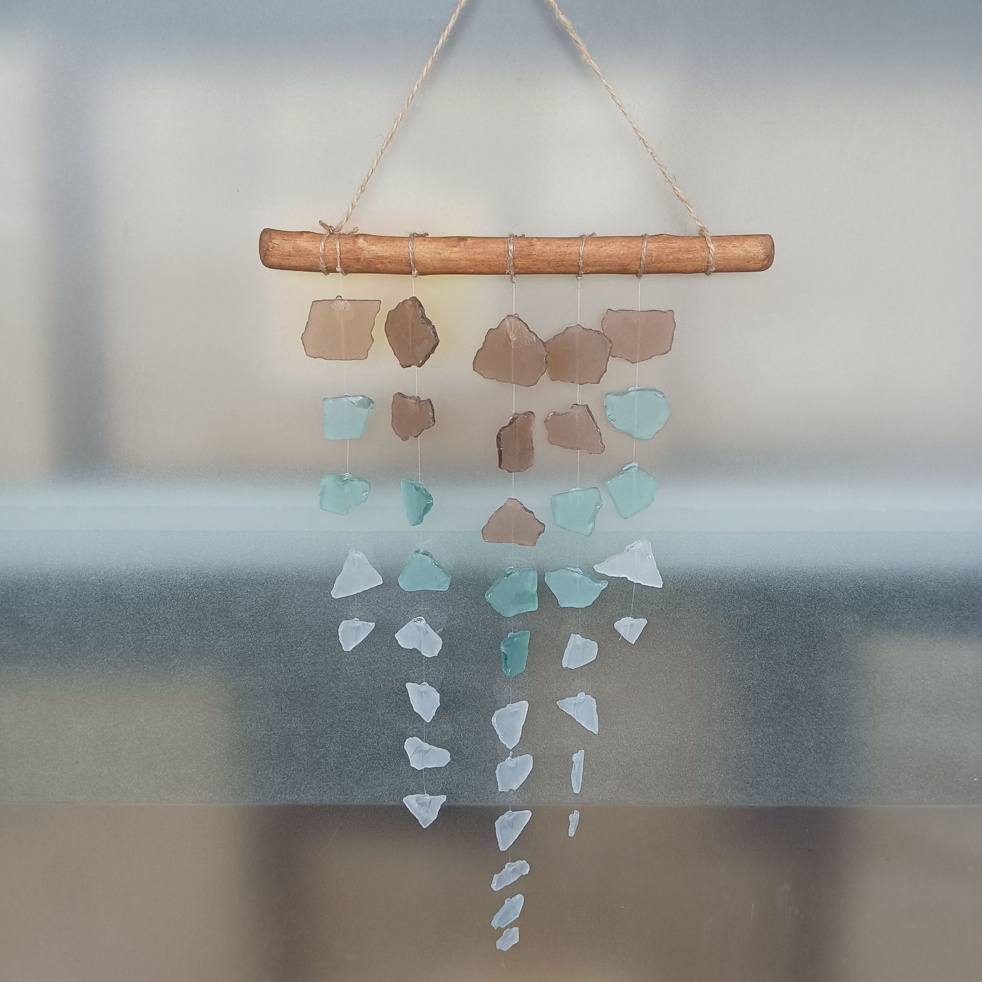 and Driftwood Sandblasted Bohemian Sea Glass Handmade Wind Chime