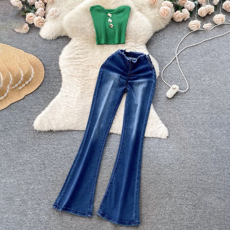 Hot Girl Style Dit jaar's Trend Mooie Sexy Strapless Top Veelzijdige Dim Flared Broek Mode Tweedelige Set Voor