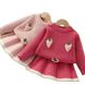 JINYONG Nieuwe 2025 Meisjes Gebreide Trui Pak Rok Ronde Hals Effen Kleur Grote Aardbei Pullover Tweedelige Set