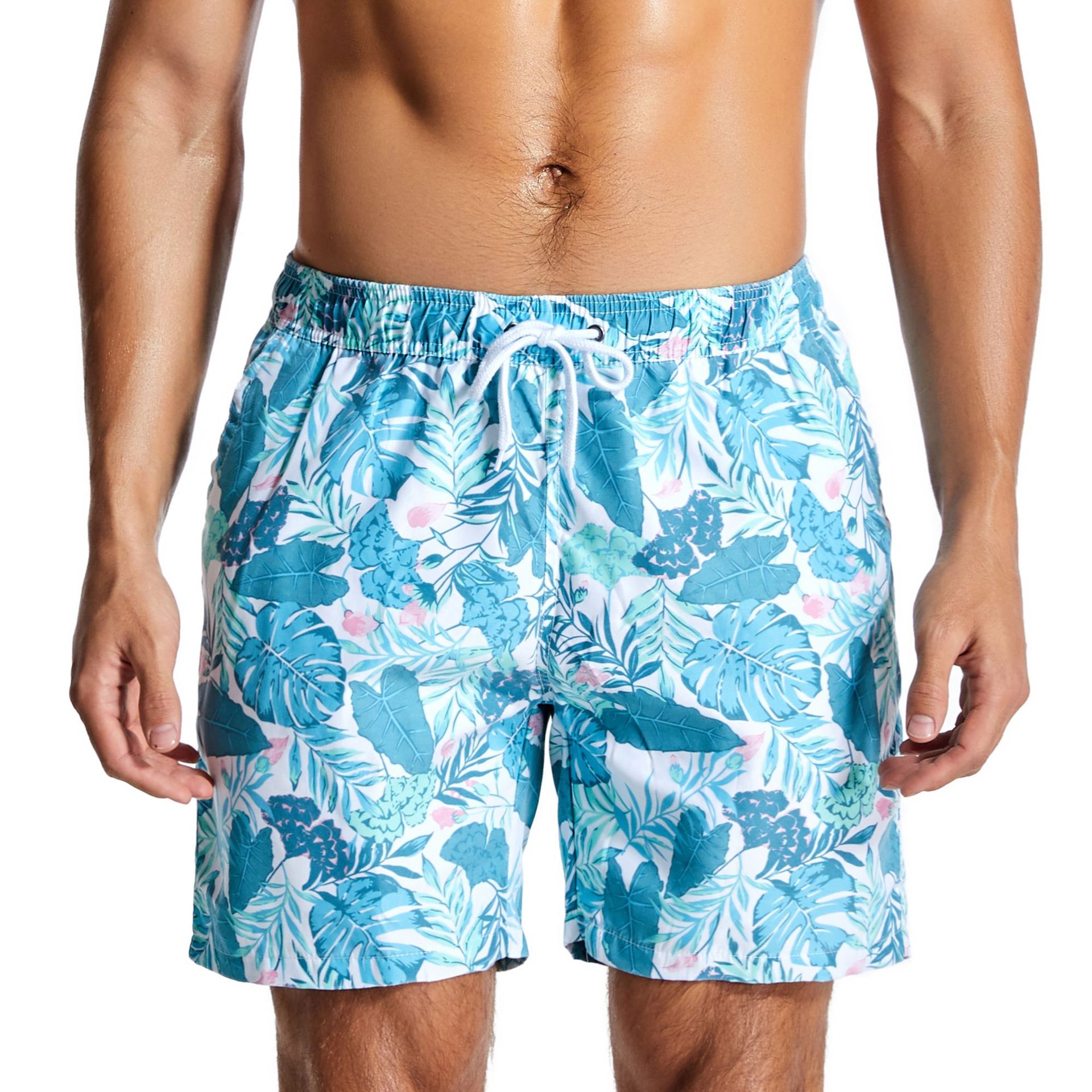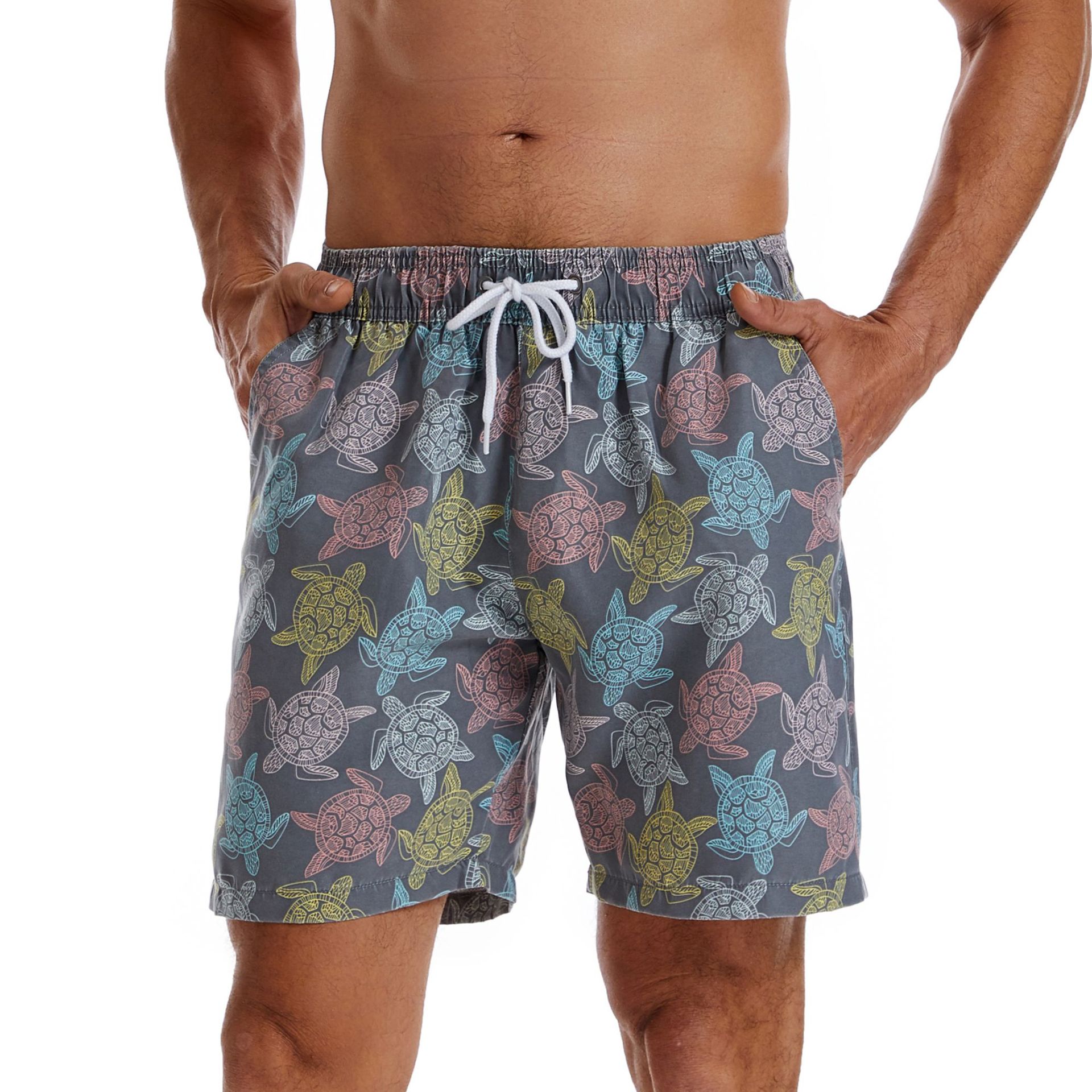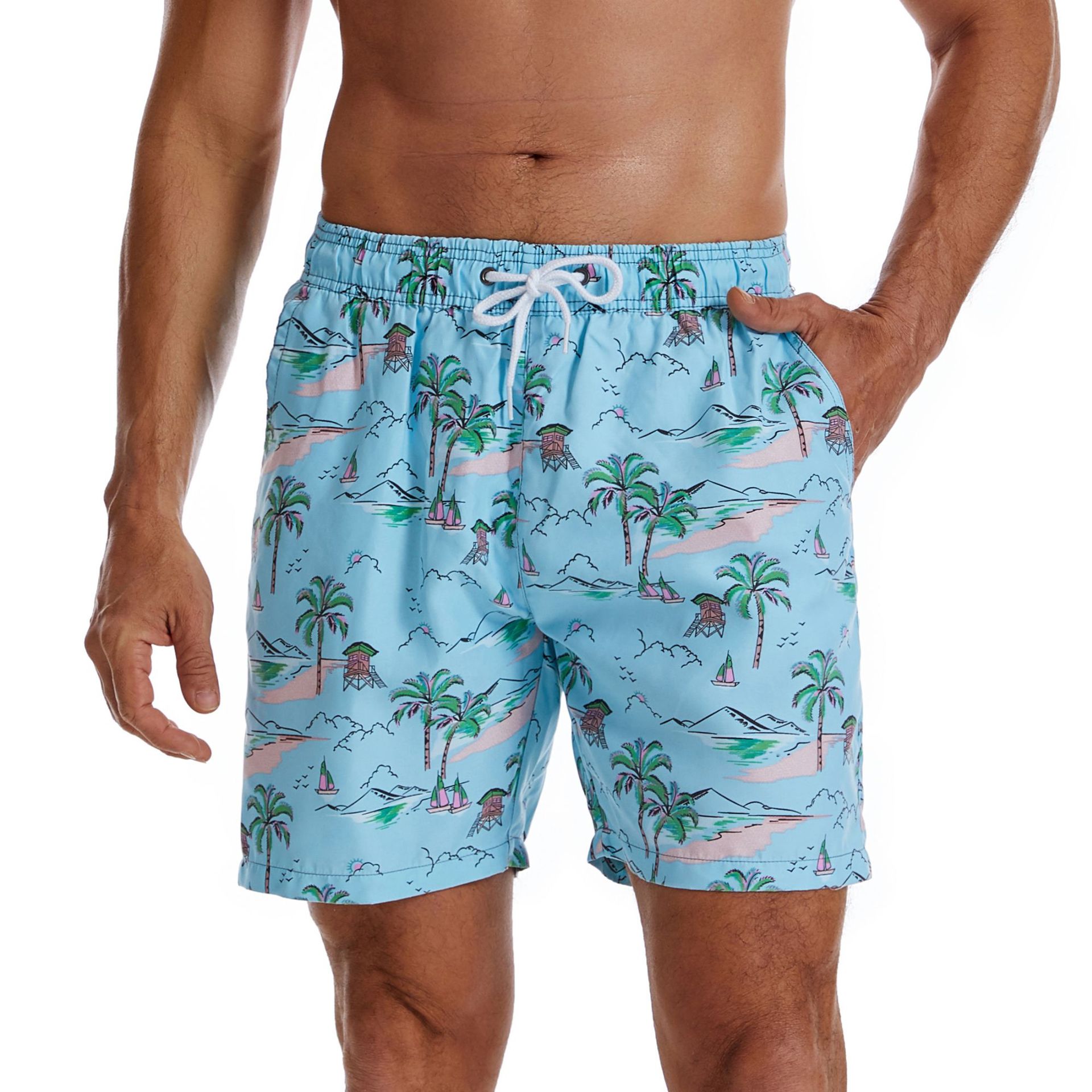 Men's Quick Drying Beach Pants Striped Printed Washed Fabric Swimming Pants Large Casual Shorts