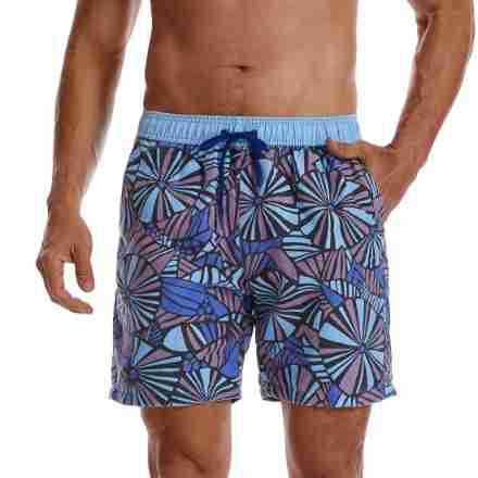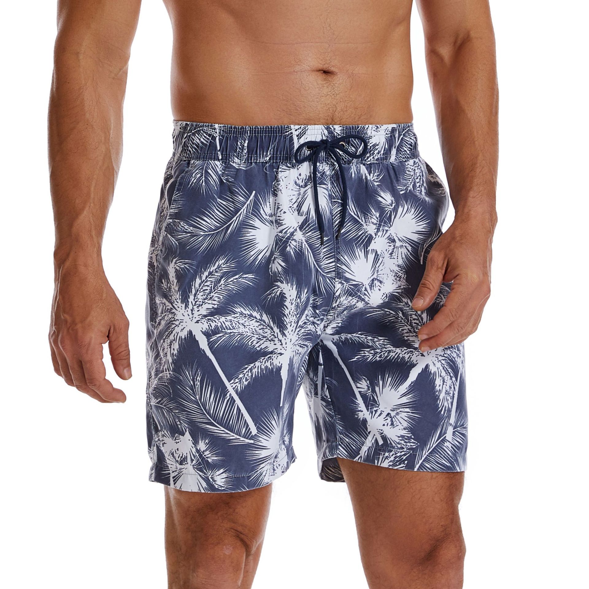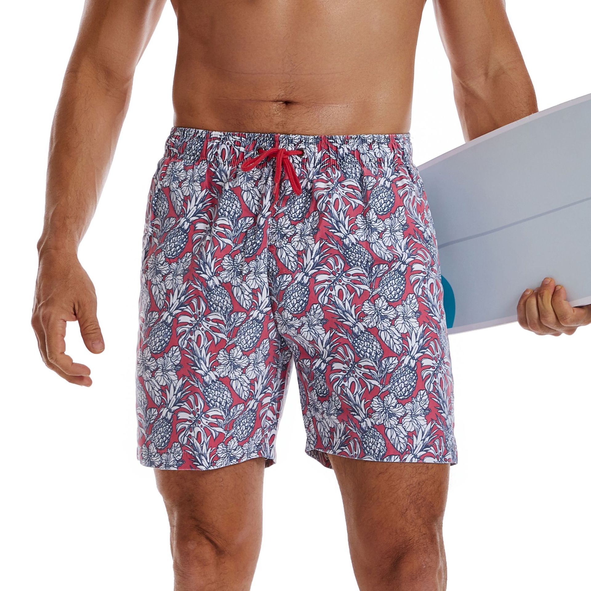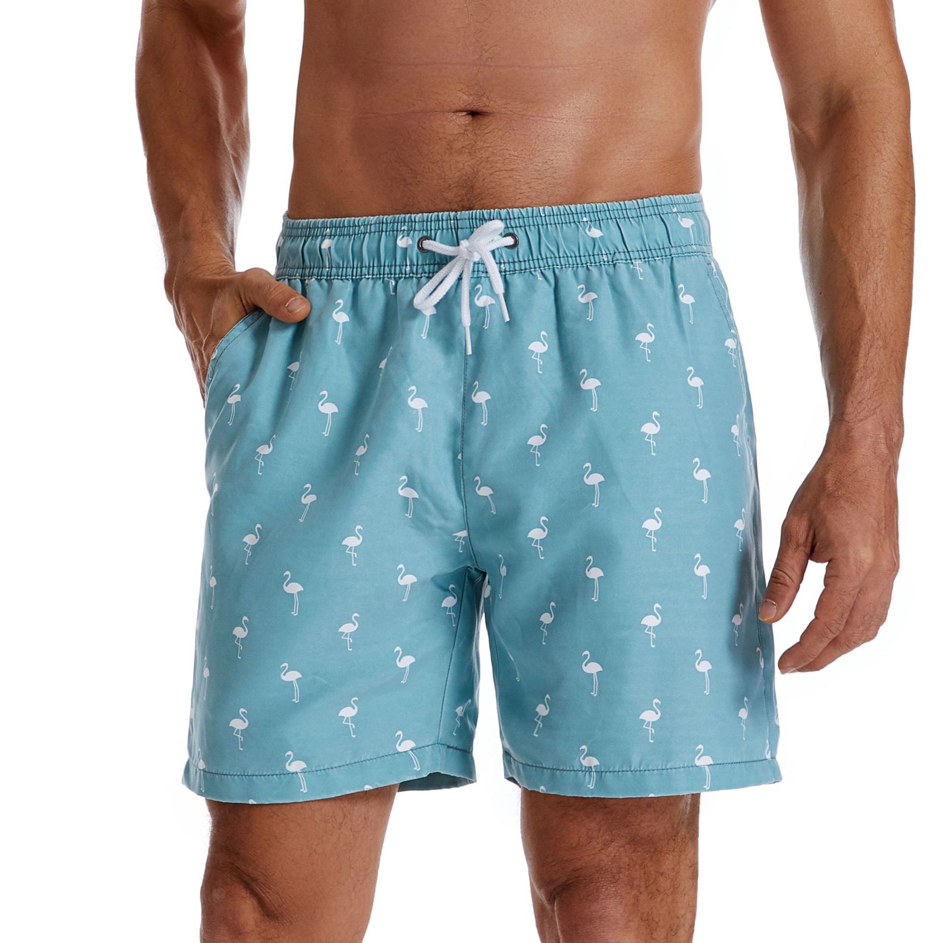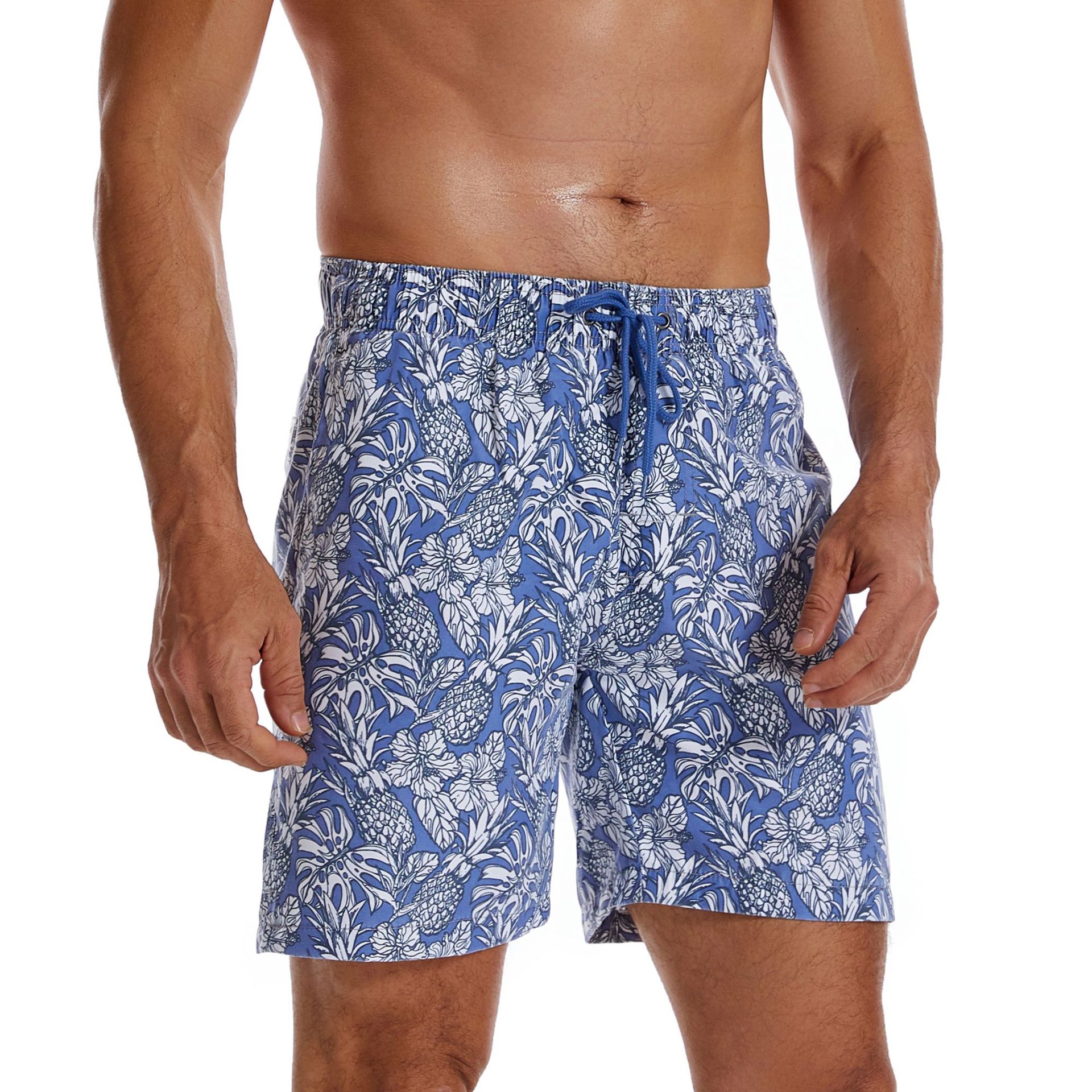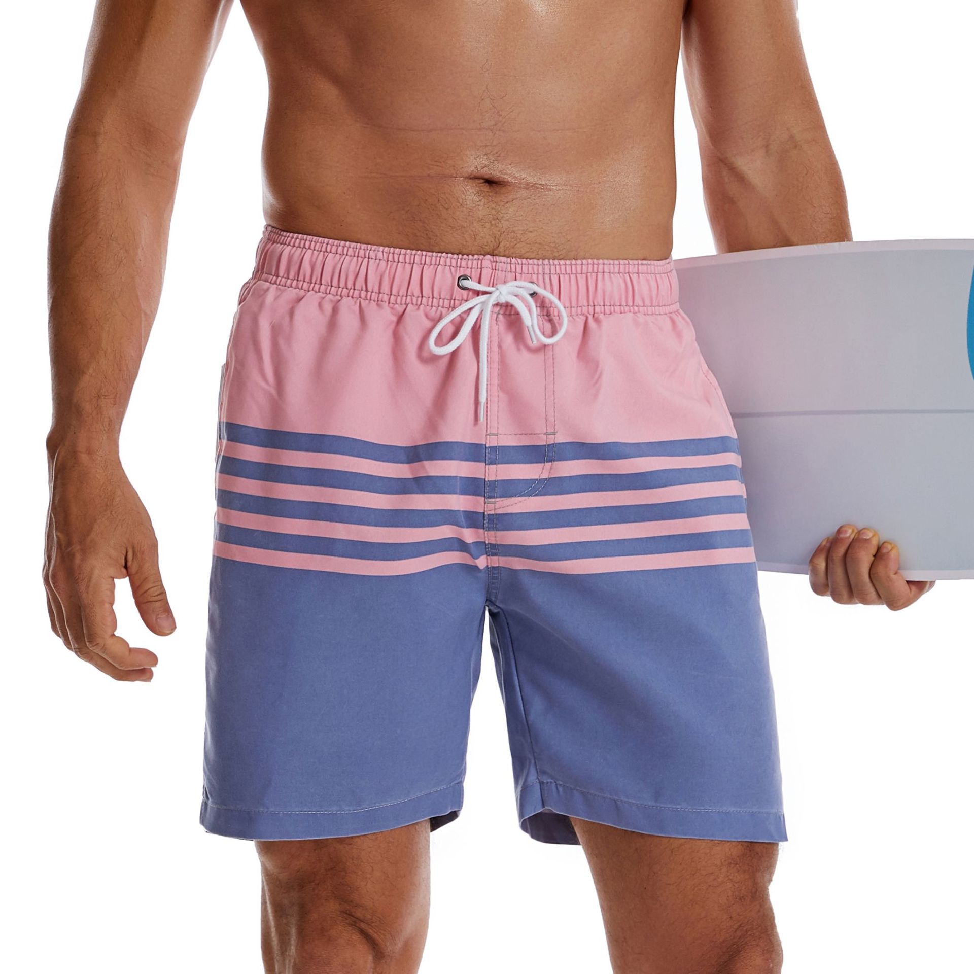 Sneldrogende strandgestreepte zwembroek met print, gewassen stof, grote vrijetijdsshort voor heren