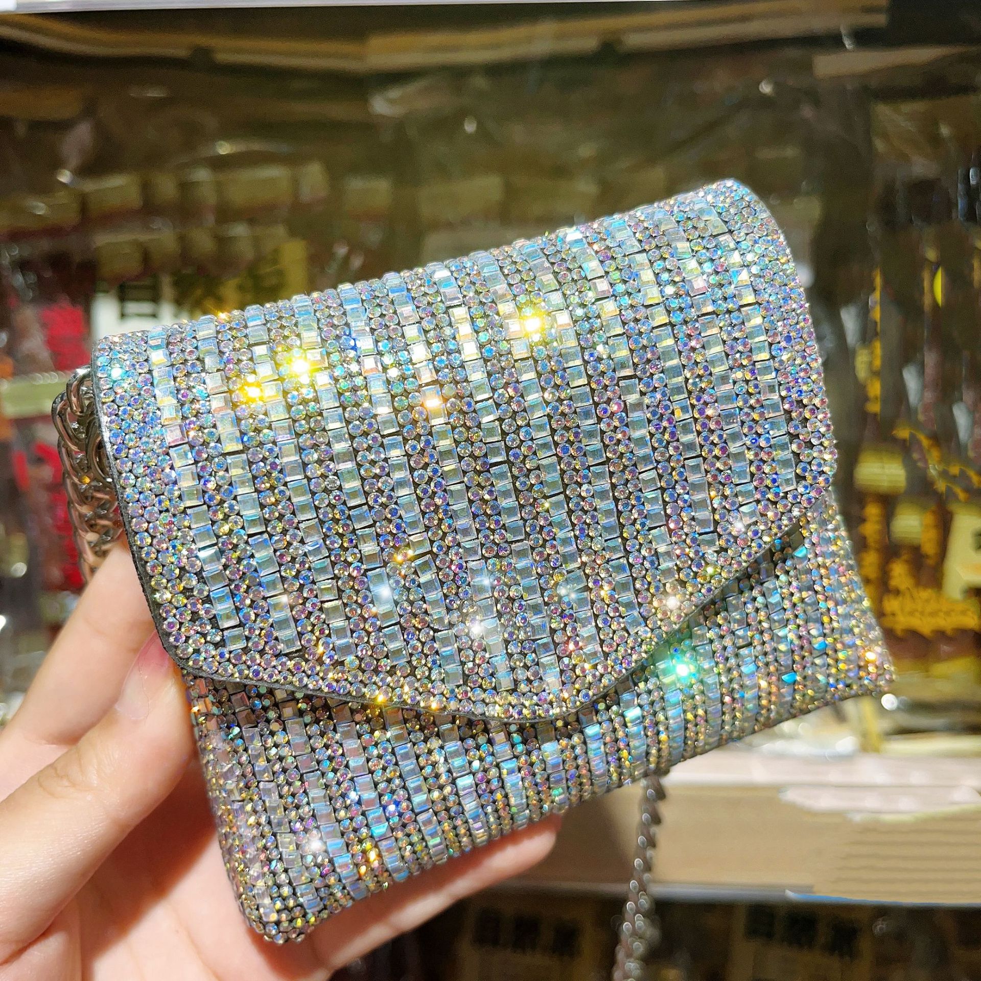 Mini schoudertas 2024 Guangzhou trendy strass ketting crossbody hot diamond design party dames handtas klein vierkant