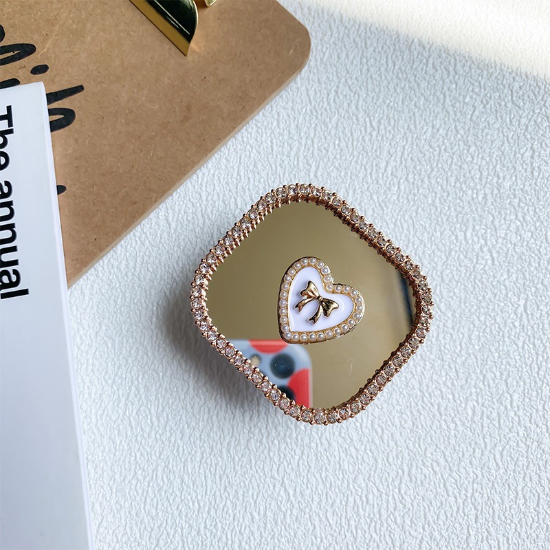 Mobiele telefoonhouder, spiegel, sticker op de achterkant, intrekbare airbag, liefdesvierkante strasssteentjes, Ins-stijl, luxe opvouwbare en