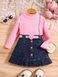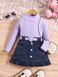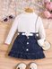 Babykleding Kinderkleding meisjes effen kleur vest shirt met lange mouwen denim open zakplooien Rokpak