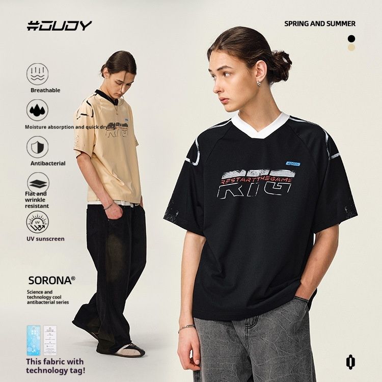 #OVDY Men's Summer Street Loose Short Sleeve Cool Antibacterial 230g Heavy Ovesize Half Sleeve Trendy Brand