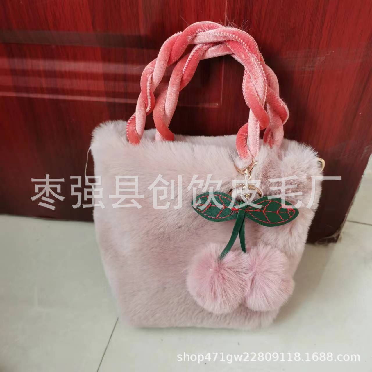 Konijn pluche kersen tas, schattige meisjes handtas, dames nepbont nieuwe Koreaanse versie herfst en winter enkele schouder