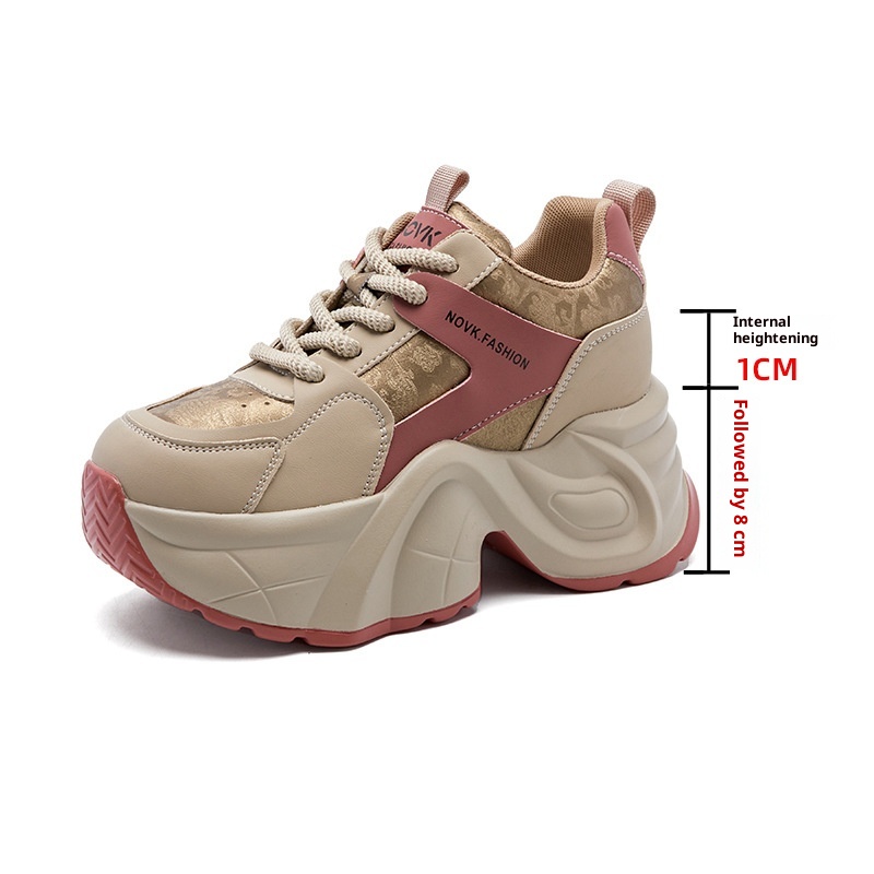 ShoeGlobe High-End Stijl Outdoor 2024 Herfst Winter Nieuwe Dikke Zolen Hoogte Verhogende Dad Sneakers Voor Vrouwen Casual Echt