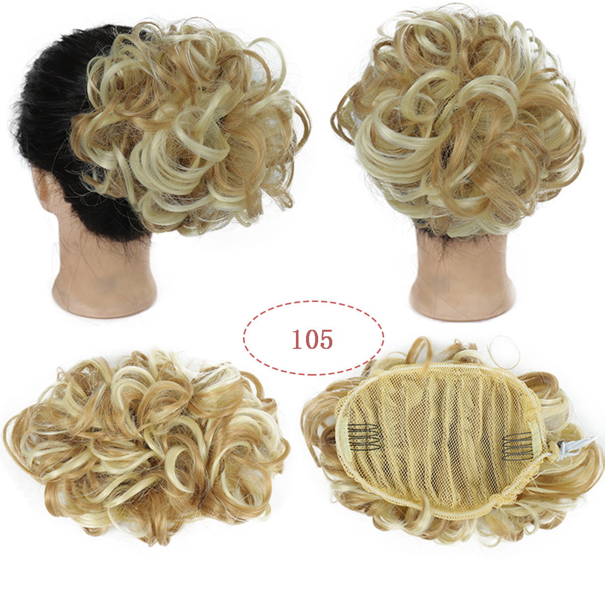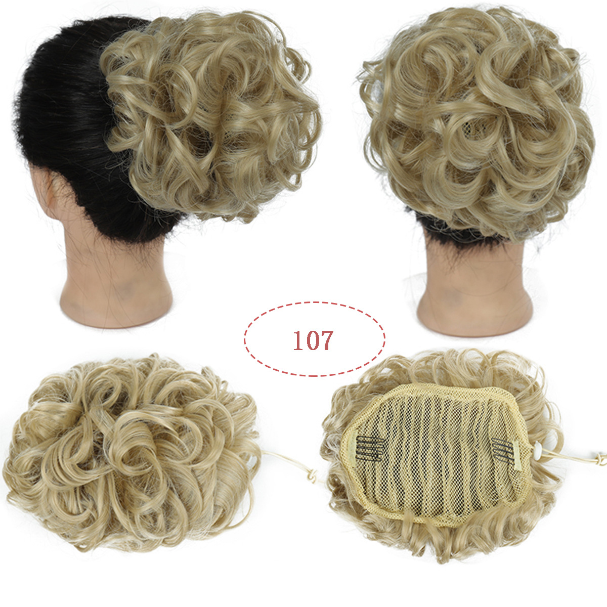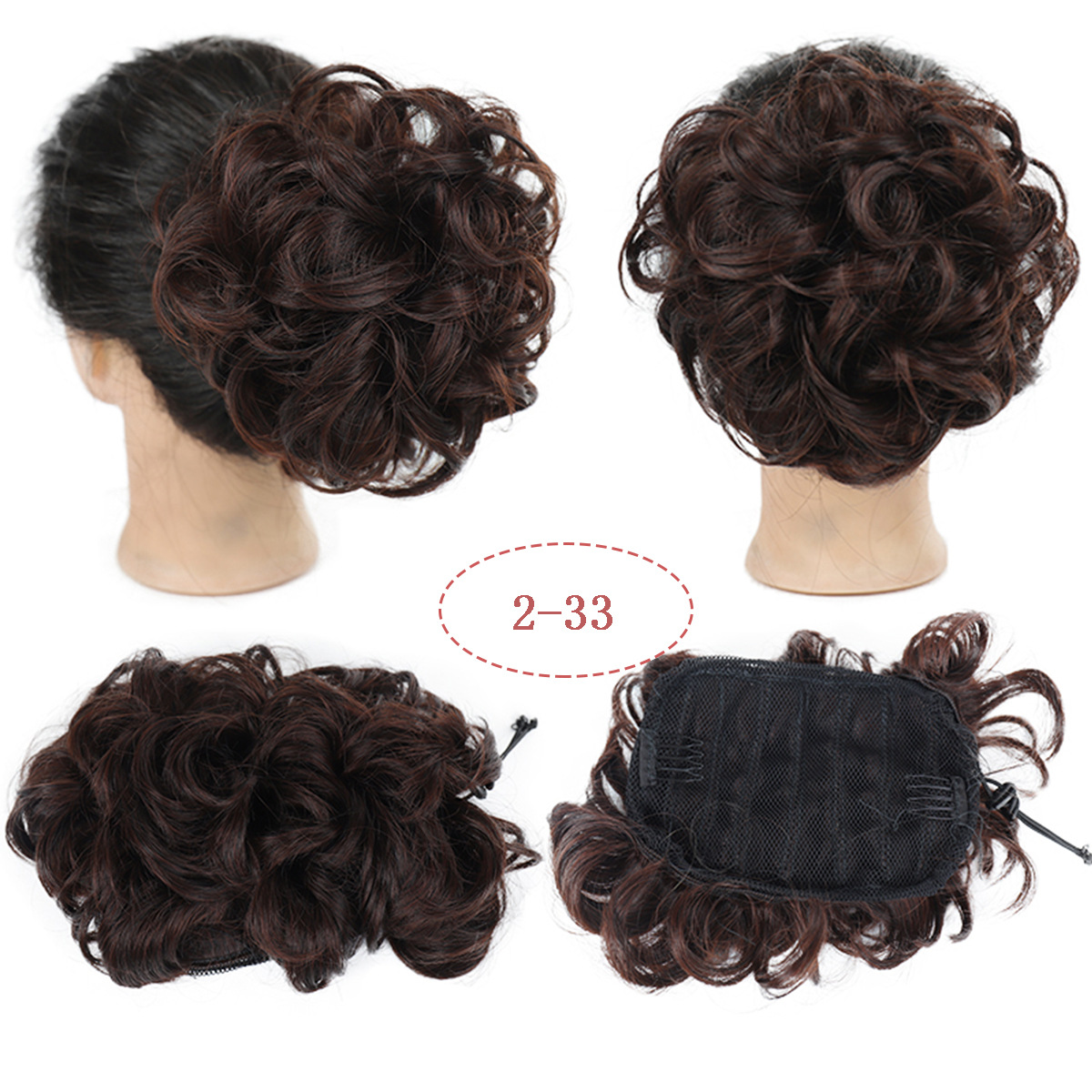 Mode pruik vrouwen twee-kaart stretch trekkoord hoge temperatuur zijde haar rommelige pluizige knot