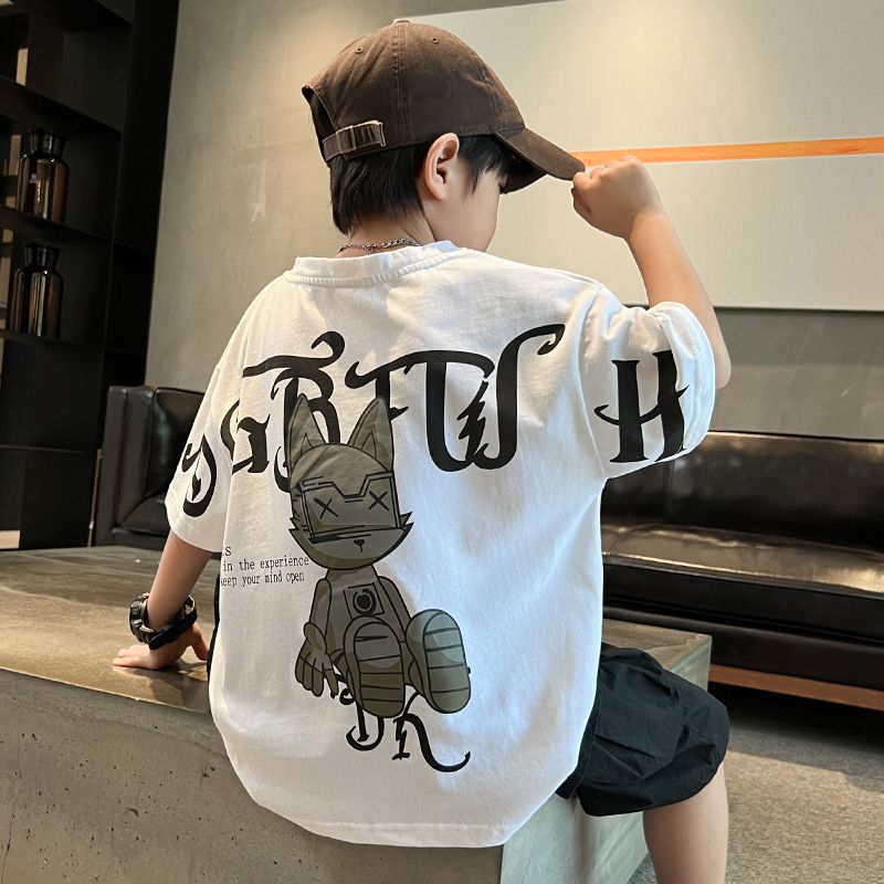 Trendy merk korte T-shirt dun 2024 nieuwe populaire kinder zomerjurk half mouw jongens top modieus