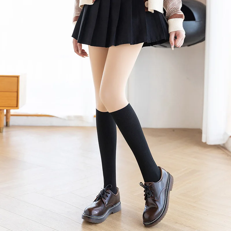 Vrouwen Warme Panty Lente Been Streep Veet Dikke Valse Kuit Sokken Huid Patchwork Kousen Dames Bont Panty