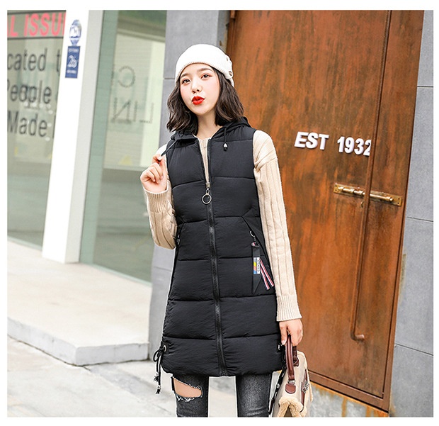Dameskleding Buitenlandse Handel voor Vrouwen, Middellange Lengte, 2025 Herfst en Winter Nieuwe Koreaanse Mode Capuchon Slim Fit Plus Size Katoenen Vest